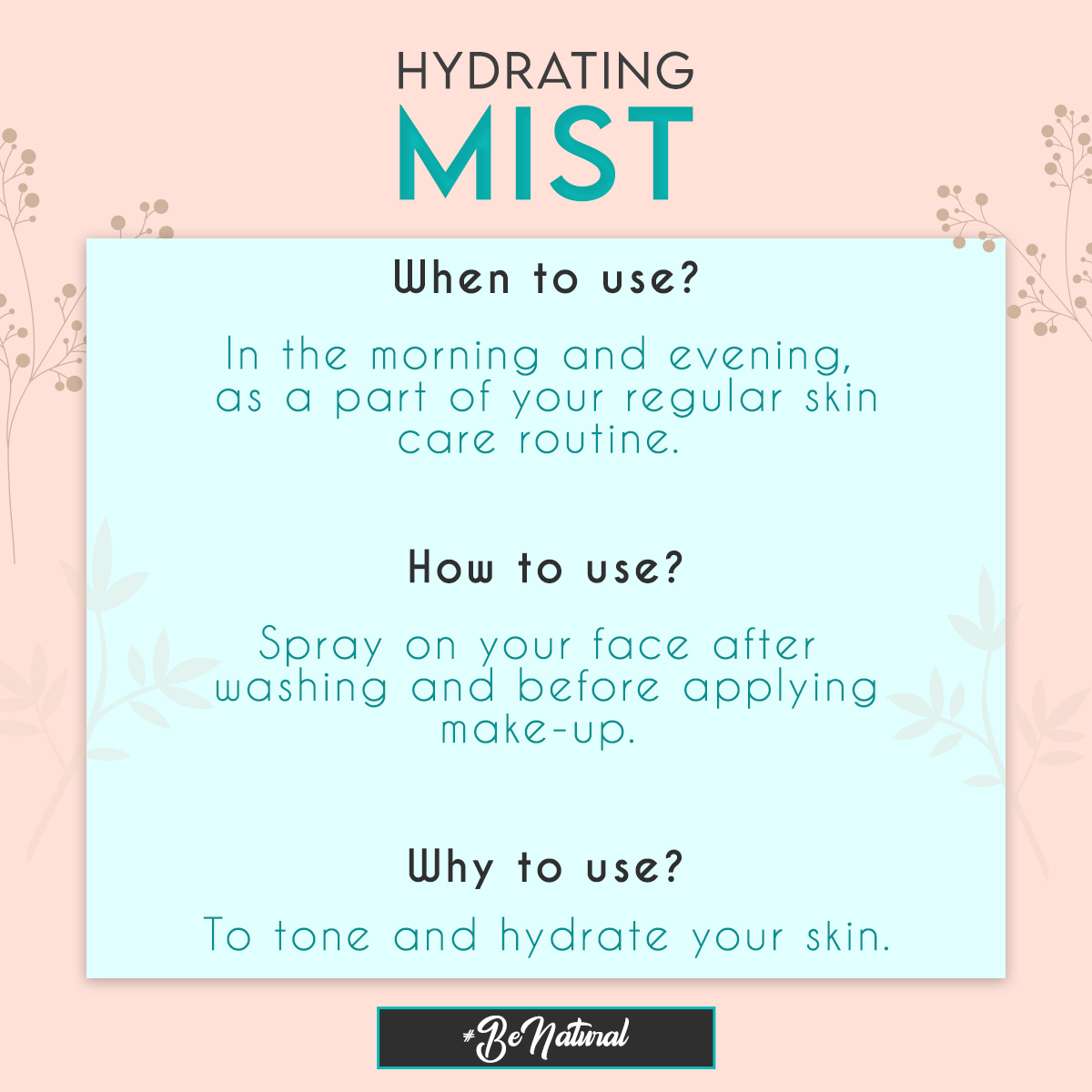 Use as a toner after cleansing, or as much as required during the day to keep the skin fresh and hydrated.